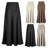 - Attributes4: Women Fashion Vintage Solid Skirt Satin Slim Elastic Waist Midi Skirts Office Lady Wear Elegant Woman Chic Mermaid Skirt