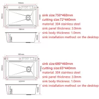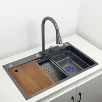 Waterfall Kitchen Sink 304 Stainless Steel Sink Large Single basin With Multifunction LED Waterfall Faucet Above Counter