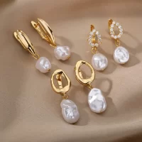 Circle Earrings For Women Vintage Punk Round Baroque Pearl Earrings Stainless Steel Ear Clip Women Jewelry Imitation Pearl Gift Mujer
