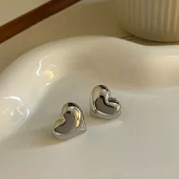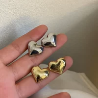 Gold Color Smooth Surface Love Heart Shaped Stud Earrings Women Minimalist Fashion Girl Wedding Bridal Jewelry