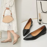 New Pointed Toe Shallow Mouth Square Heel Small Leather Shoes Women’s Elegant Fashion High Heels Dress Shoes Zapatos Mujer