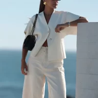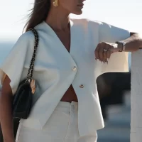 Casual Solid Knit Top Women Short Sleeve V-neck Two Buttons Slim Elegant Vest 2024 Summer Autumn Female White All-match Knitwear