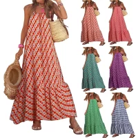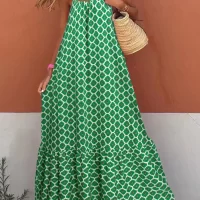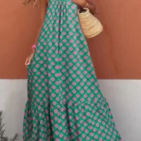 Print, boho style, sleeveless, spaghetti straps, ruffled hem, summer dress for women, ankle length design makes the legs more slender and makes you look slimmer.