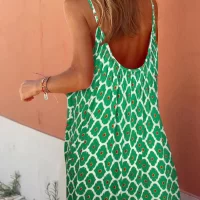 Women Boho Sleeveless Dress Print Summer Loose Spaghetti Strap Party Dress for Cocktail Beach Streetwear