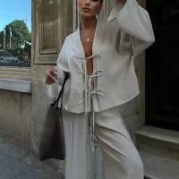 - Model Number: Women Cotton Line Pants Set