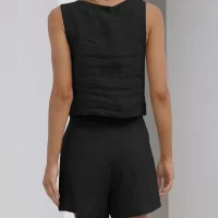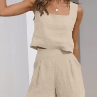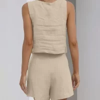 Women’s Summer 2PCS Outfit Sets Solid Color Sleeveless Sling Vest + Casual Shorts with Pockets